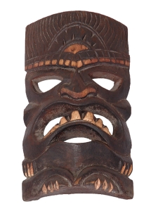 This Tiki mask comes with the hook in the back and is ready to hang. It would be a great addition to a Hawaiiana collection and is a fine example of oceanic art. Also perfect for a tropical decor theme or to create a Polynesian atmosphere in your tiki bar or luau. This mask/statue is a world traveller's find which would appeal to the serious tiki collector.