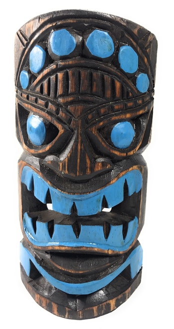 Here is a hand carved Tiki mask with an antique finish. This Happy tiki mask was hand carved with great attention to details. Comes ready to hang.