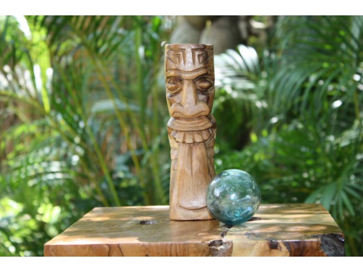 This beautiful MOARI Tiki totem- scaring bad spirits away with his scary tongue - was hand carved and hand waxed by an experienced artist with great attention to details. This is a beautiful Tiki, made out of premium, solid Monkey Pod Wood.