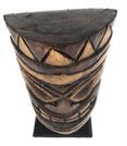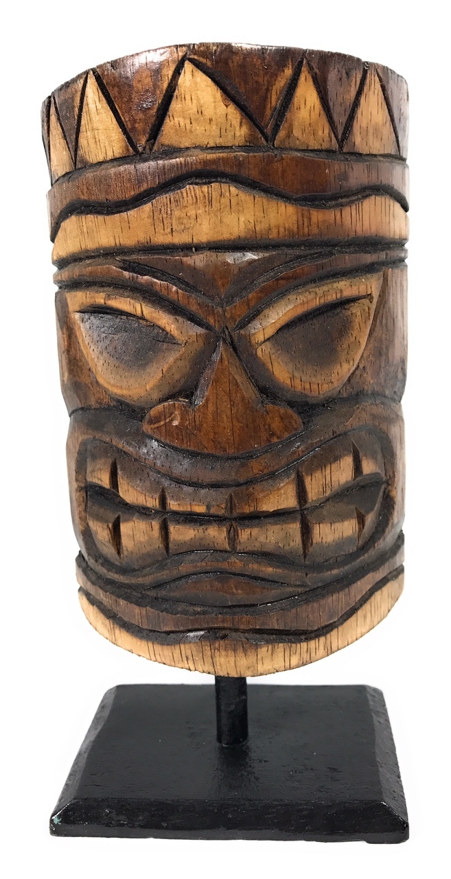 Here is a hand carved Tiki mask on stand with an antique finish. This money Tiki mask was hand carved with great attention to details.