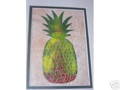 This is a beautiful, hand made, tapa cloth depicting a Hawaiian PINEAPPLE. The Tapa cloth framable area with the mat as seen on the picture measures 8 x 10 inches.