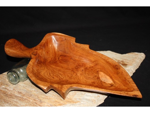 This is an exquisite palm design bowl made from a teak root which grows under ground. The grain is spectacular, the wood is hard, heavy and dense. Each piece is unique and will vary slightly in shape and tone.