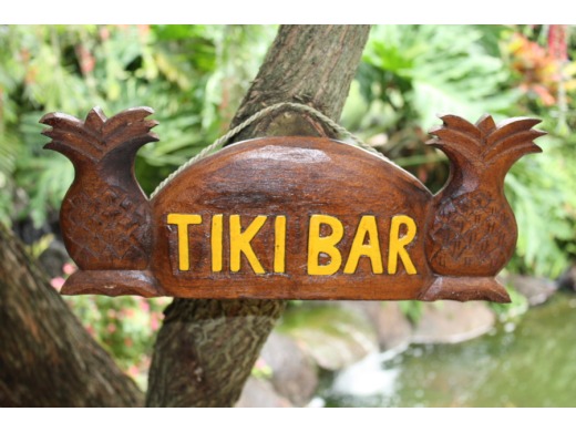 This is a hand made vintage looking "TIKI BAR" welocme sign, with hand carved and hand painted pineapples on each side.