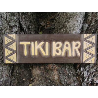 Here is a hand made Tiki sign "TIKI BAR", each letter of TIKI BAR is raised (hand carved) along with the tribal design on each side.
