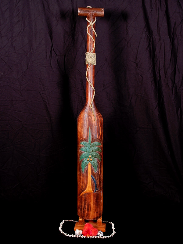 Here is an artfully designed Tiki paddle that was hand carved and hand painted with great attention to details. It has a palm tree design on the blade. The antique finish gives it a beautiful vintage look. Measurement: 46" X 6" (120 cm by 15 cm). Ready to hang.