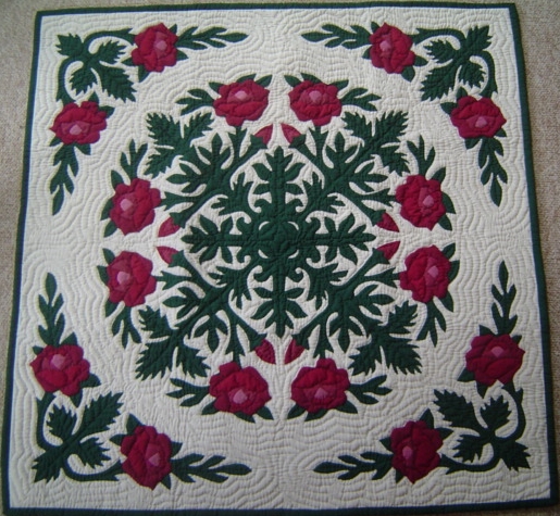 Each wall hanging is hand quilted by Master Quilters taught in the traditional Hawaiian style of quilting. Each Quilt has over 250,000 stitches and average 6-8 stitches per inch. We appliqué the design using the hidden or "blind" stitch onto the background material. It is then quilted with a ripple or echo pattern. Every piece is hand made with great care to insure your total satisfaction. Please contact us for availability and special orders (at NO EXTRA COST!).
