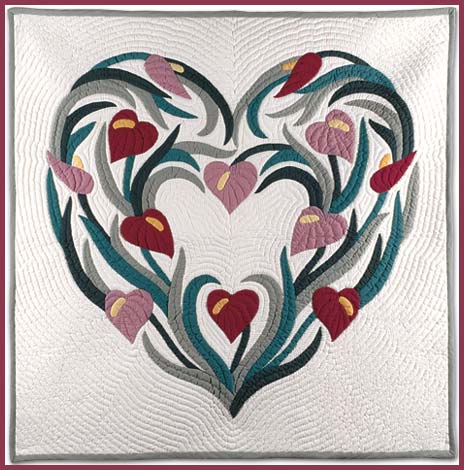 Each wall hanging is hand quilted by Master Quilters taught in the traditional Hawaiian style of quilting. Each Quilt has over 250,000 stitches and average 6-8 stitches per inch. We appliqué the design using the hidden or "blind" stitch onto the background material. It is then quilted with a ripple or echo pattern. Every piece is hand made with great care to insure your total satisfaction. Please contact us for availability and special orders (at NO EXTRA COST!).