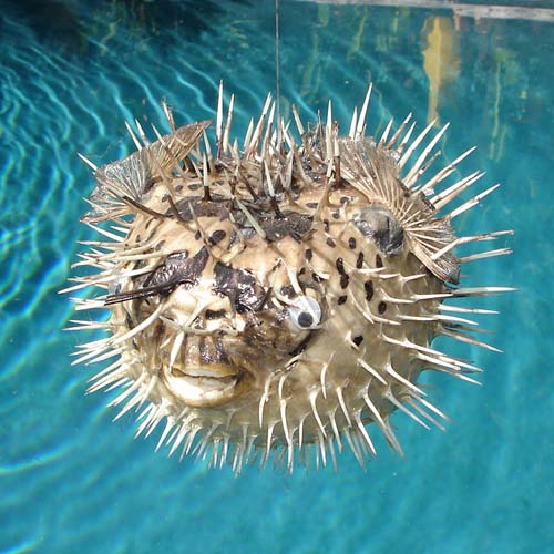 This is an authentic puffer fish which was captured in the Indo Pacific Ocean.