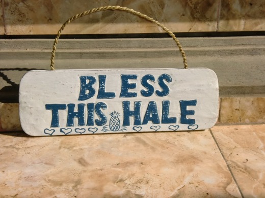 Here is a beach/cottage style "Bless This Hale" sign in rustic white & blue coastal colors.