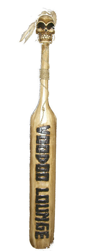Here is an artfully designed Tiki paddle that was hand carved and hand painted with geat attention to details. It has the wording VOODOO LOUNGE on the blade and a skull on the handle. It has an an antique finish which gives it a beautiful vintage look. Measurement: 46" X 6" (120 cm by 15 cm).
