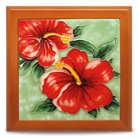 Click to enlargeFramed Ceramic Tile: Red Hibiscus