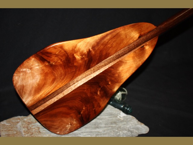 Here is an authentic Koa Outrigger canoe paddle from Hawaii made out of PREMIUM CURLY KOA wood It is a unique and unusual IPU design. Paddle cost is dependent on the amount of color, curl, and character of the wood.