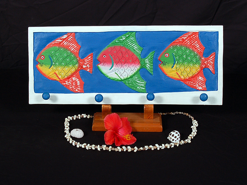 This tropical wall hanger has the two carved turtles on it. The Hawaiian Honu is a symbol of longevity in the Pacific Islands.