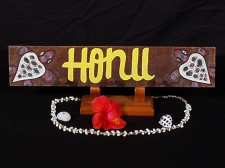 This tropical wall hanger has the two carved turtles on it. The Hawaiian Honu is a symbol of longevity in the Pacific Islands.
