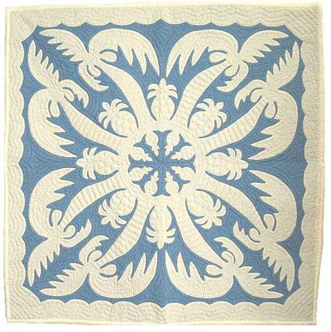 Each wall hanging is hand quilted by Master Quilters taught in the traditional Hawaiian style of quilting. Each Quilt has over 250,000 stitches and average 6-8 stitches per inch. We appliqué the design using the hidden or "blind" stitch onto the background material. It is then quilted with a ripple or echo pattern. Every piece is hand made with great care to insure your total satisfaction. Please contact us for availability and special orders (at NO EXTRA COST!).