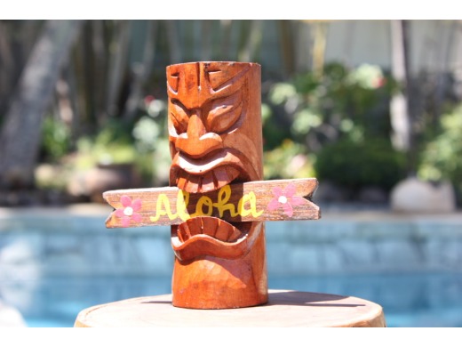 This wooden Tiki totem - will bring you Love... measures 6 inches tall by 2.5 inches (15 cm X 6cm). This hand carved and hand painted tiki totem is great as a gift, trophies or for your own collection.