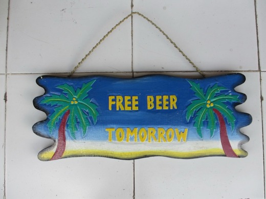 This is a hand made wooden tiki bar sign with the wording: "FREE BEER TOMORROW" and featuring beautiful palm trees. A great sign to give your tiki bar a very tropical look. Also, perfect for your home or your outdoor living area!