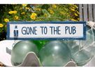 Here is very cute "GONE TO THE PUB" wooden sign in blue / red / yellow coastal colors! The sign has been hand carved and hand painted, great piece of home decoration!