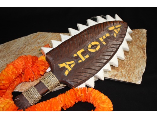 This is a fine replica of the traditional lei o mano . It was hand carved and hand painted the traditional Hawaiian way.