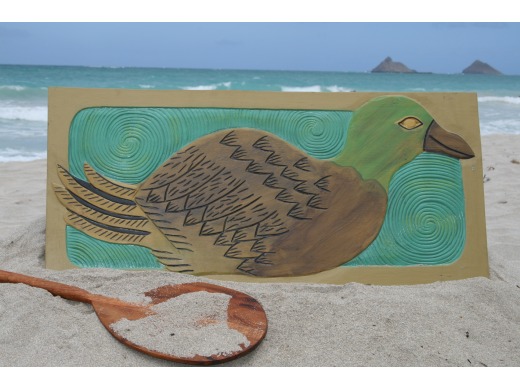 Here is a beautiful wooden storyboard, hand carved and hand painted featuring HAWAIIAN BIRD "MOTHERHOOD".