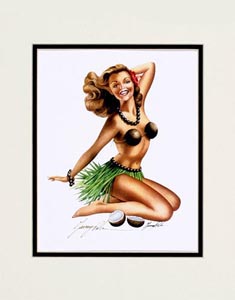 Hawaiian COCONUT GIRL Vintage Pinup Poster by Garry Palm. Classic Tropical Teaser Pinups. Nostalgia Hawaiiana print