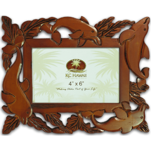 Hawaiian Dolphins Carved Wood Photo Frame 4" x 6"