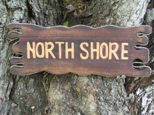 This is a hand made "NORTH SHORE" Drift Wood Tiki bar sign. Each letter of Aloha is hand carved, painted and raised. The sign has rope around it, which gives it a nautical touch and rustic feel. This great piece of handycraft measures 20 inches wide by 7 inches tall (50cm x 18cm). It comes ready to hang with 2 hooks in the back.