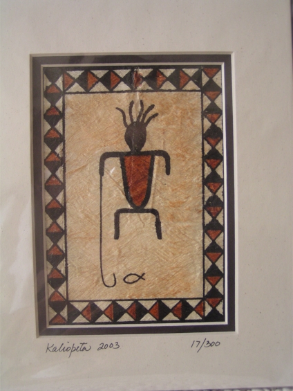 This is a beautiful, hand made, tapa cloth depicting a Hawaiian fisherman framed by a with meaningful and powerful design around it. The Tapa cloth framable area with the mat as seen on the picture measures 10 X 8 inches.