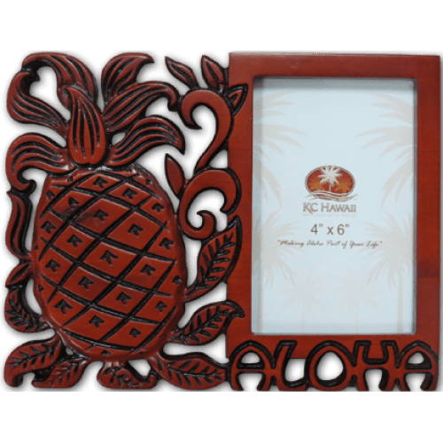 Hawaiian Pineapple Carved Wood Photo Frame 4" x 6"