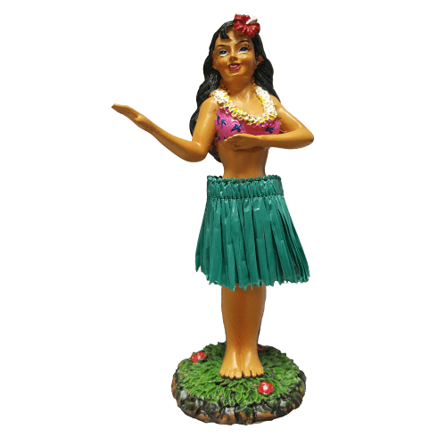 Our newest Hawaiian hula girl dashboard doll is sculpted by an artist and hand painted with detail. Place her on your car dashboard or desk and watch her hula!