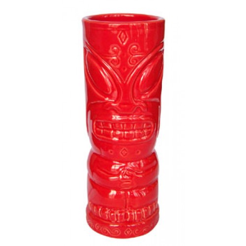 This HAWAIIAN LOVE TIKI tiki mug has a really nice look and feel to it! Distinctive handle makes it easy to hold. It has been hand crafted and painted and has a handsome quality glossy red glaze and ceramic detail. Measurement: 7" High x 2.5" Diameter. Holds 13oz.