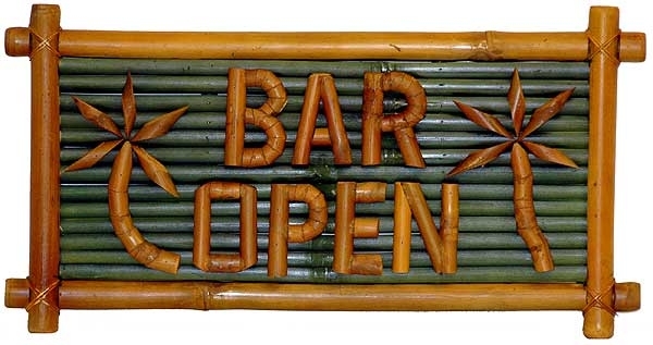 Here is a hand crafted, vintage looking wooden Tiki sign with the wording "BAR OPEN", featuring palm trees on the side. This bamboo beach bar sign has been hand painted with great attention to details.