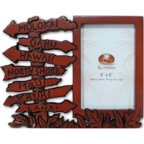 Hawaiian Islands Beach Signs Carved Wood Frame Vertical 4 x 6