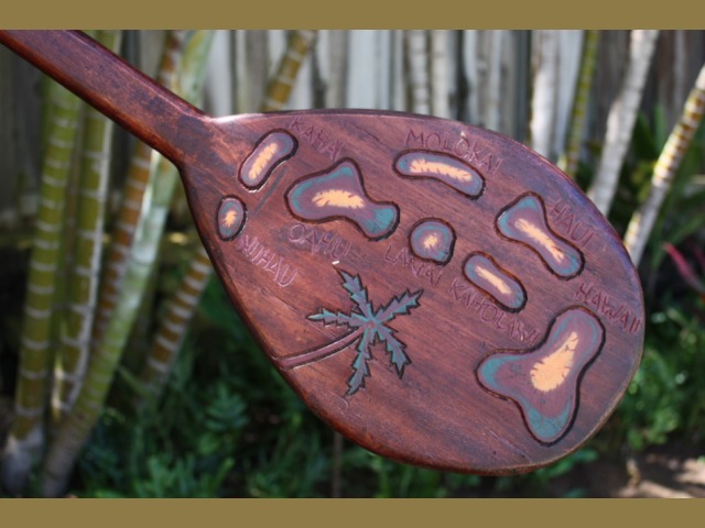 Here is a hand made vintage looking Tiki paddle artfully decorated with the Hawaiian Islands Chain.