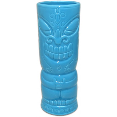 This HAWAIIAN LUCKY tiki mug has a really nice look and feel to it! Distinctive handle makes it easy to hold. It has been hand crafted and painted and has a handsome quality glossy blue glaze and ceramic detail. Measurement: 7" High x 2.5" Diameter. Holds 13oz.