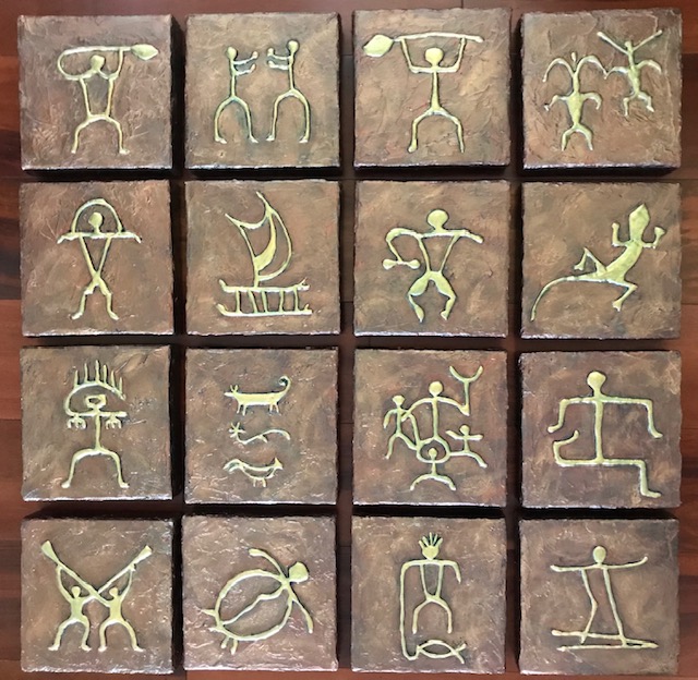 Hawaiian Petroglyph Relief Paintings - Set of 16