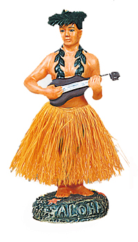 This lovely dashboard doll is sculpted by an artist and hand painted to detail. He wears a classic hula skirt and a Hawaiian flower lei around his neck. Place him on your car dashboard and watch him sway his hips. He will be your perfect driving companion...