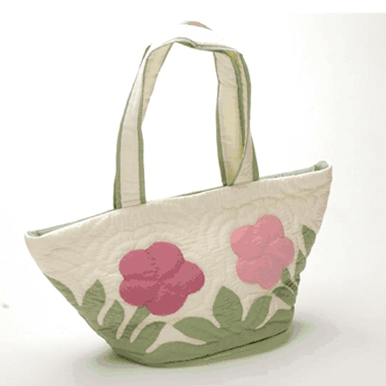 All our hand bags are hand-quilted by experienced quilters and features a zipper at the top and a soft lining inside with extra pockets. Comes with two handles.