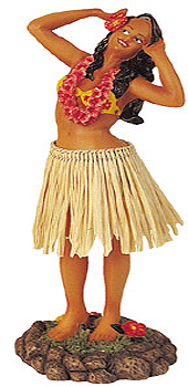 This beautiful dashboard doll is sculpted by an artist and hand painted to detail. She wears a classic natural hula skirt and a Hawaiian flower lei around her neck. Place her on your car dashboard and watch her sway her grass skirt. She will be your perfect driving companion...