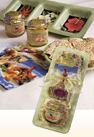 Celebrate special occasions with our Recipe Companion Gift Set. Better than a gift basket, our handcrafted ceramic Island Garden Midnight Divided Tray beautifully displays an array of gourmet Hawaiian treats. From crunchy Lavosh to perfectly tart Toasted Maui Onion Mustard, this Recipe Companion Gift Set makes the perfect gift!