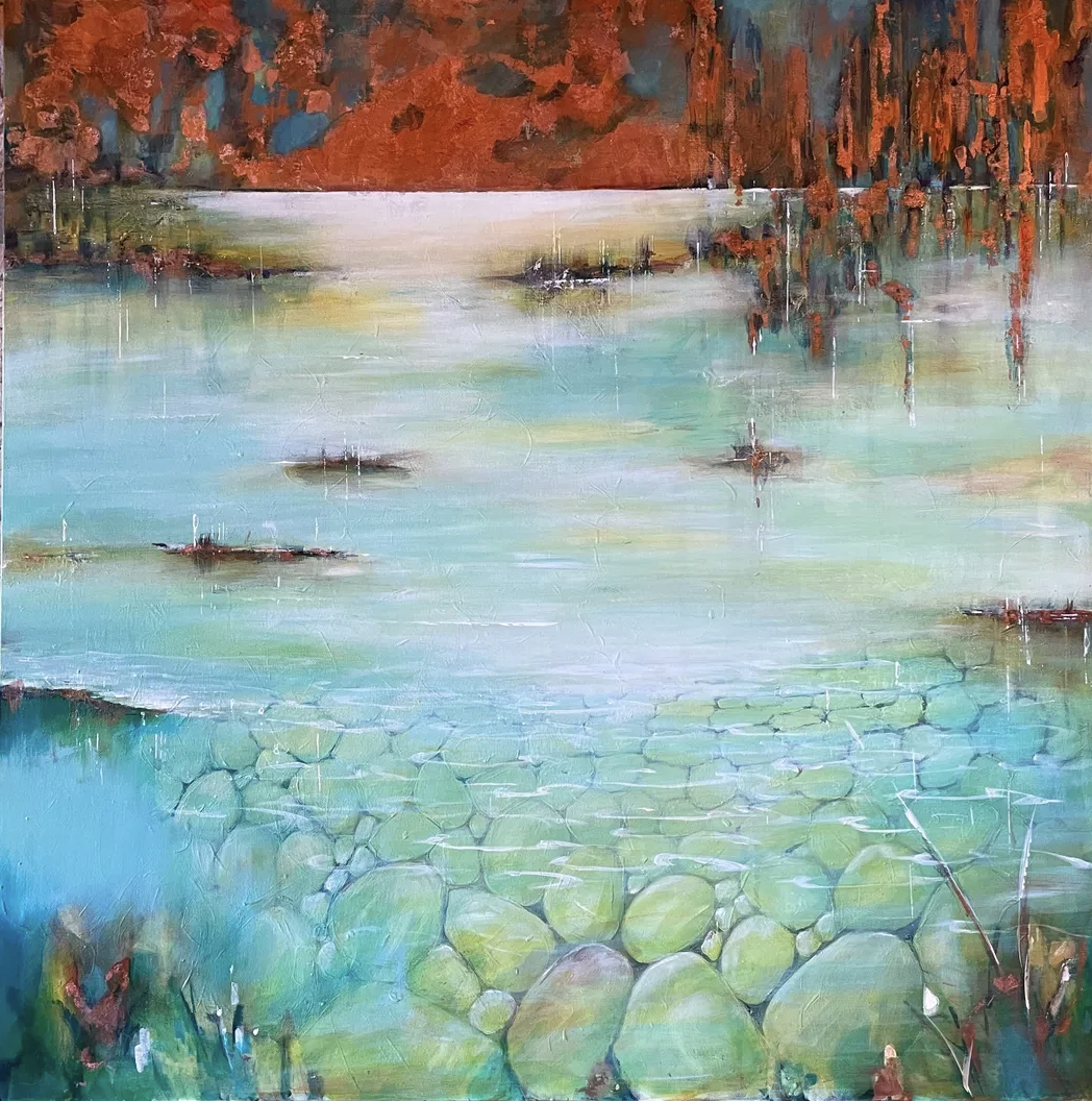 Add a tropical, contemporary touch to your room with these soothing blue, turquoise, green and shimmering bronze colors. Make this piece of Hawaii yours today!
