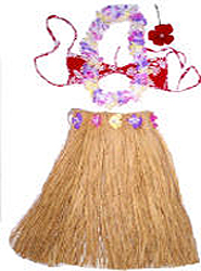 JUNIOR SIZE 16" Hawaiian Natural Grass Skirt HULA SET with Lei. Luau Party Supplies