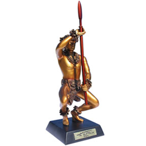 Are you decorating your home with an hawaiian theme or do you simply want to add a little tropical warmth? This solid brass sculpture would add an "old world" touch to any room. It is also a beautiful piece of Oceanic Art and a must for a Hawaiiana collection. Charm your guests and delight your family with KEKOA's vibrant strength...