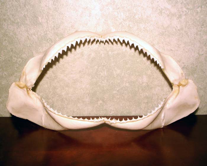 This is an authentic ocean sharks jaw of a shark which was captured in the Indo Pacific Ocean.