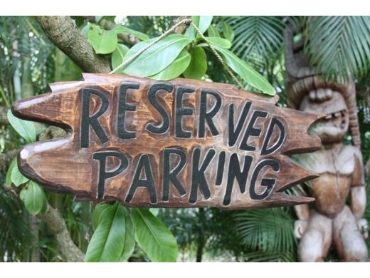 This is a hand made vintage looking sign with the wording: "Reserved Parking" on driftwood.