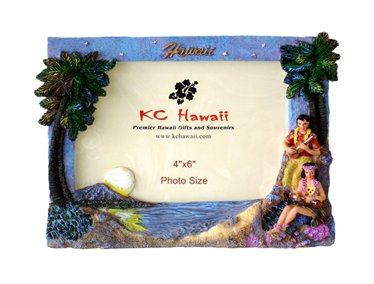 This is a colorful, island inspired foto frame featuring a couple on the beach in the moonlight with the famous Diamond Head in the background. One can almost hear the sweet melody!