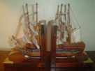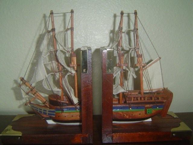 This is a set of two traditional nautical bookends featuring classic sailing ships, complete with rope sails, etc...