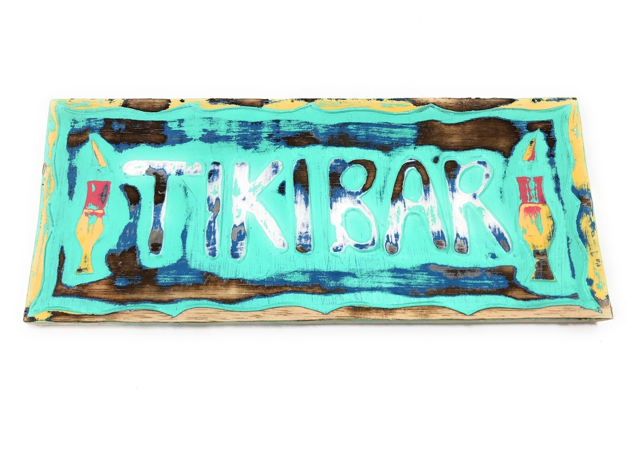 Here is a hand made Tiki sign "TIKI BAR", each letter of TIKI BAR is raised (hand carved) along with the tribal design on each side.