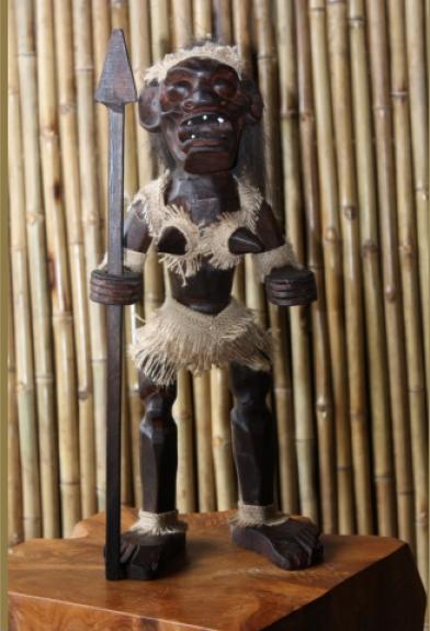 Here is a primitive Female Tiki WARRIOR Chief ready to kick some "Okole" (in Hawaiian). This Tiki measures 20 inches (30cm) tall. She certainly looks very intimidating with her spear and would make a great conversation piece!