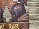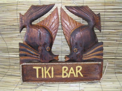 This is a hand made, retro Hawaiian carved wood "TIKI BAR" cool fish sign. The sign has been hand carved and hand painted with great attention to detail and has a very artistic touch and rustic feel. This great piece of handycraft measures 15 inches wide by 16 inches tall. It comes ready to hang with 2 hooks in the back.